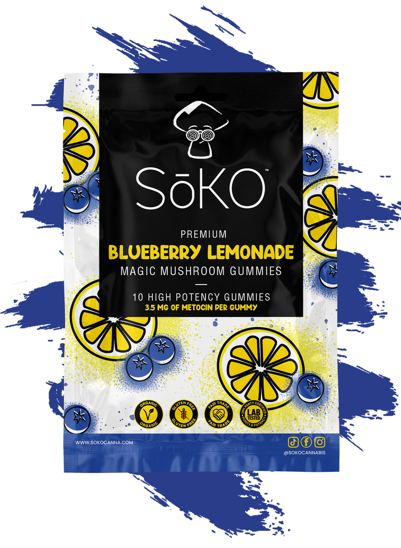 SōKO Blueberry Lemonade Magic Mushroom Gummies represent the most powerful and effective lab-tested Metocin brand available. Free of THC, amanita, and other illegal chemicals, these gummies are crafted to elevate your psychedelic experience with unmatched quality.