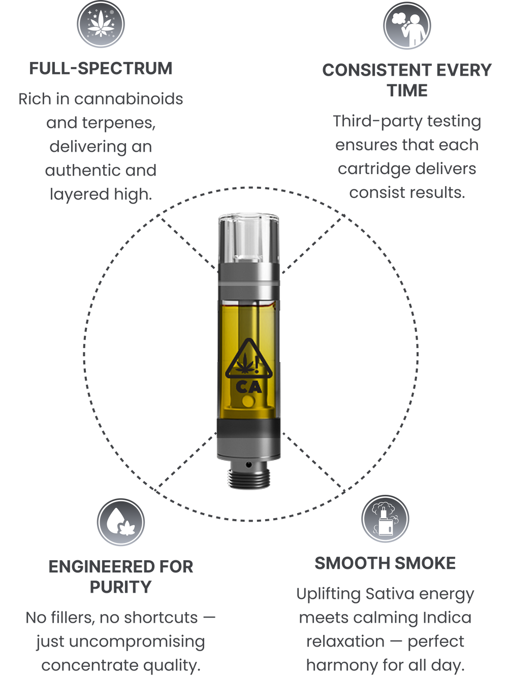 Our vape cartridges are crafted with precision, delivering a full-spectrum experience that’s consistent every time. Engineered for purity and smooth smoke, they set the standard for quality you can trust.