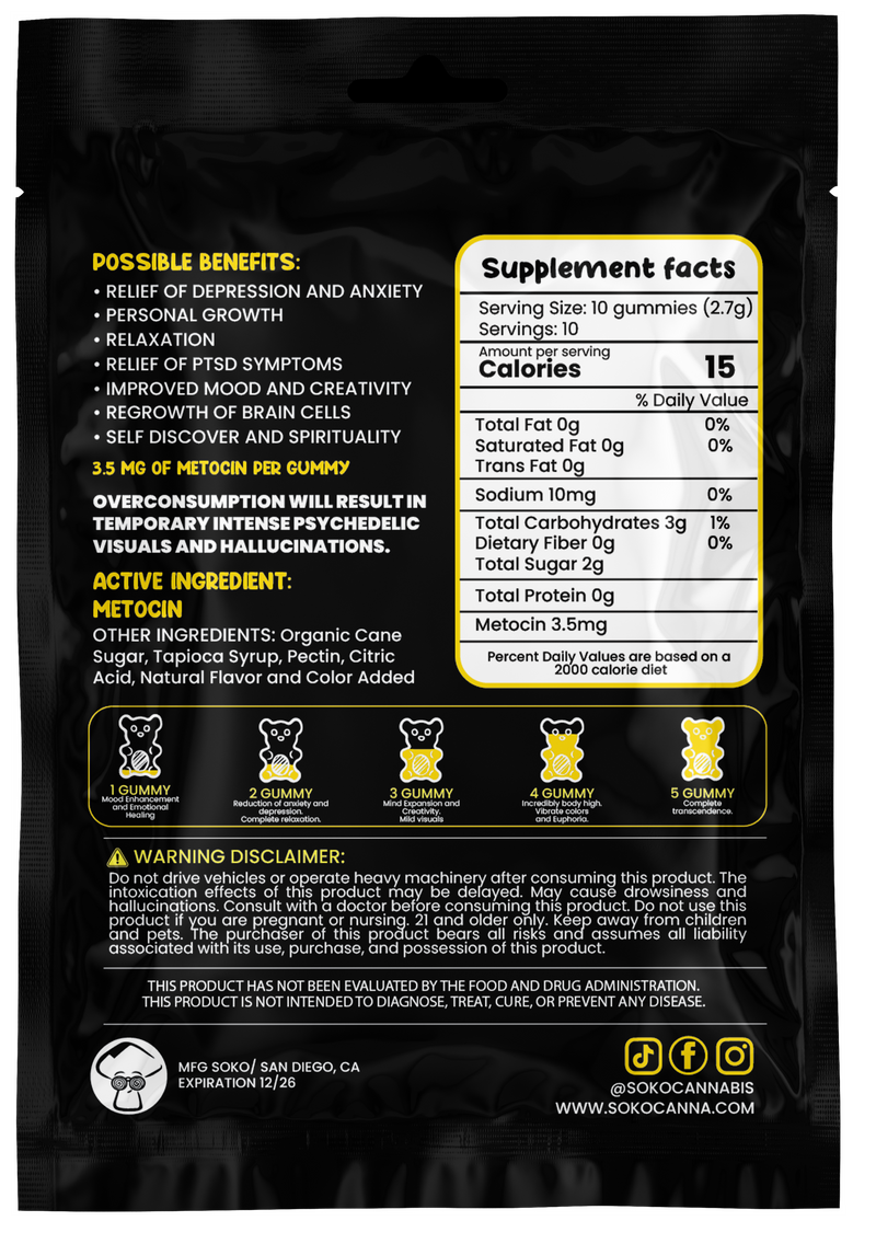 SōKO Blueberry Lemonade Magic Mushroom Gummies represent the most powerful and effective lab-tested Metocin brand available. Free of THC, amanita, and other illegal chemicals, these gummies are crafted to elevate your psychedelic experience with unmatched quality.