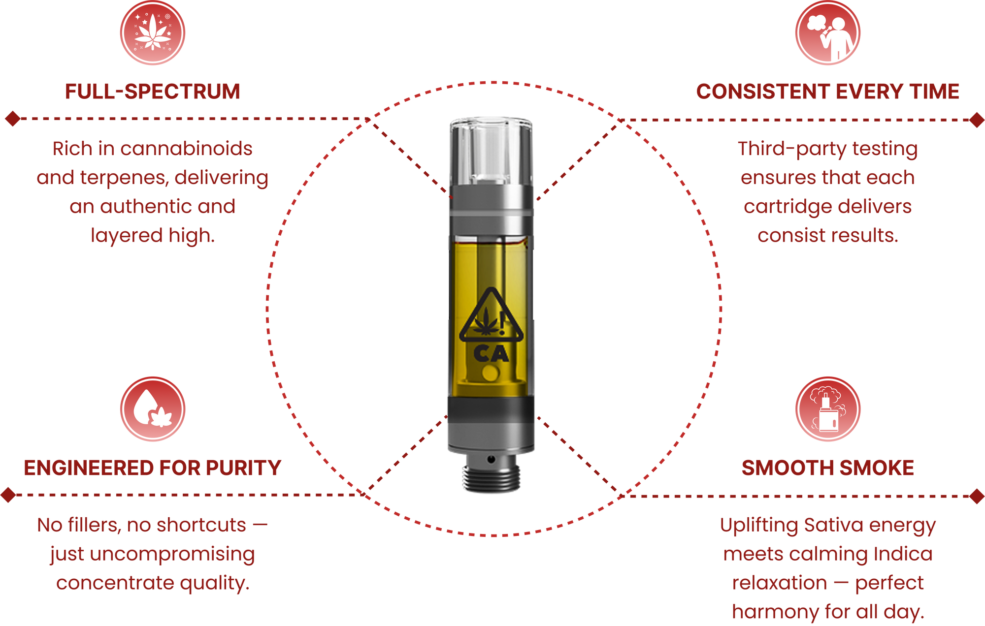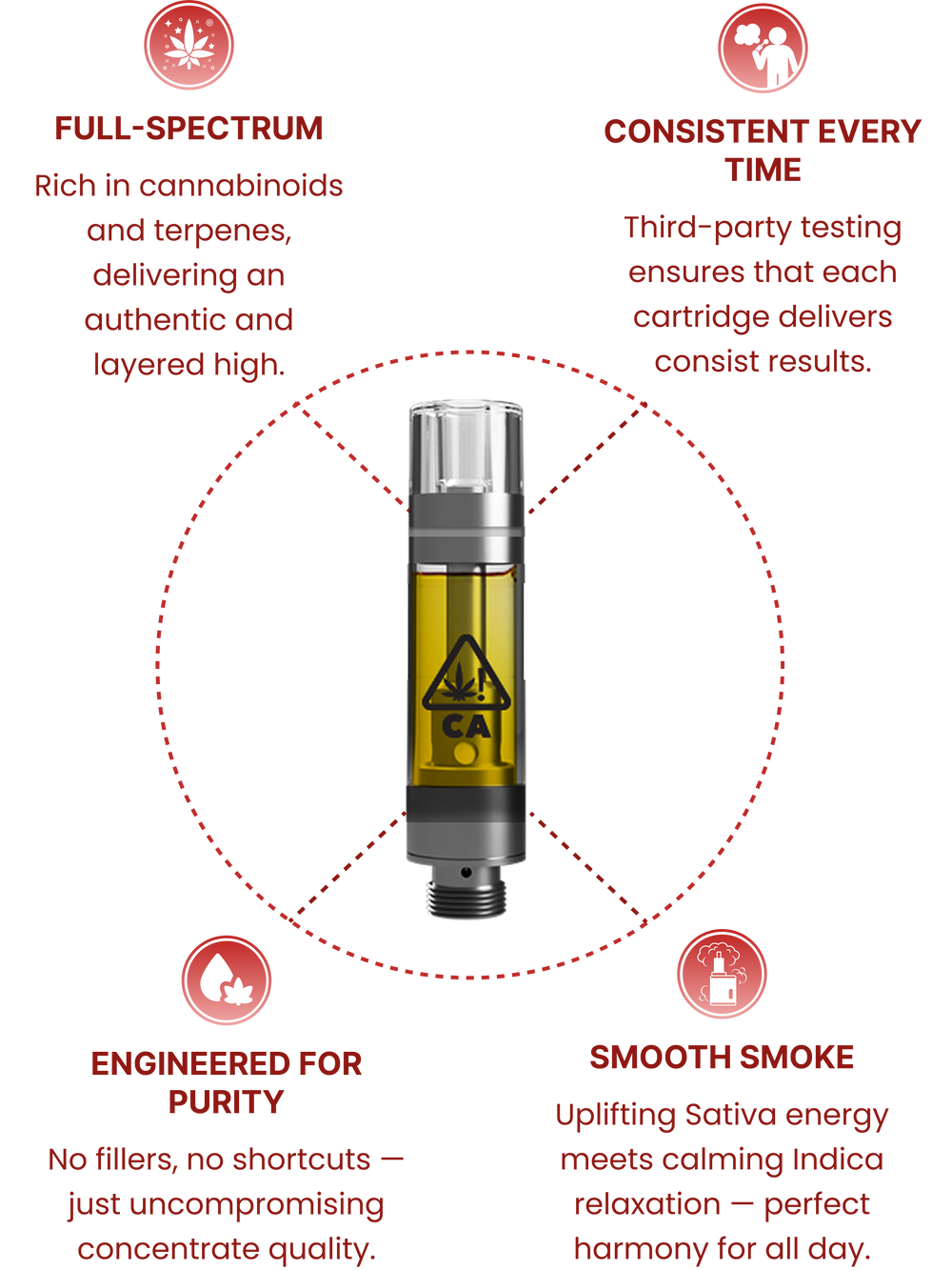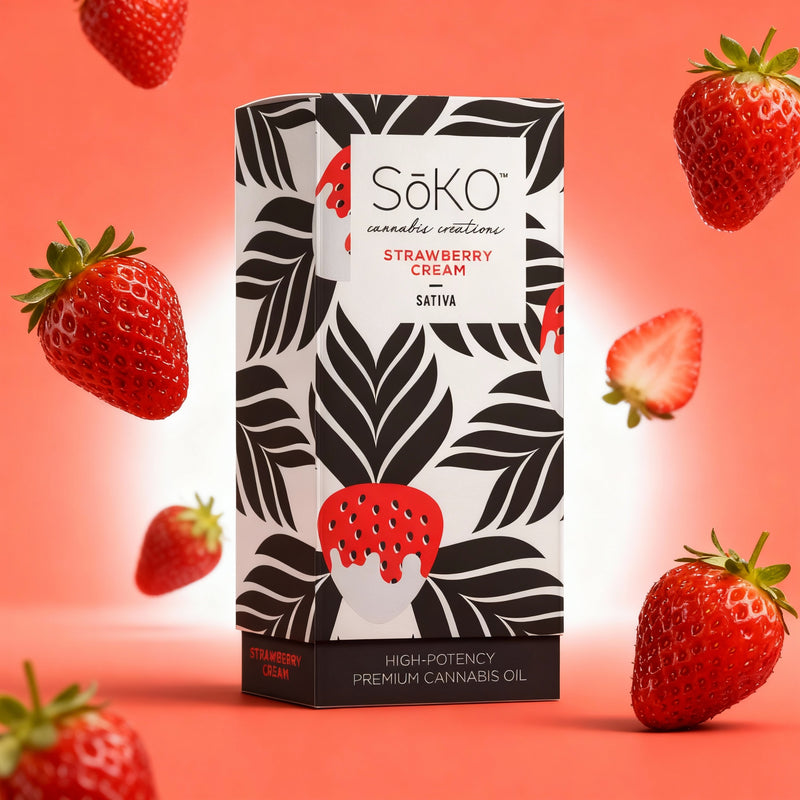 SōKO THC Vape Concentrate: Strawberry Cream is a Sativa strain with a pungent, fruity scent and uplifting effects. It highlights sweet strawberry flavor with a creamy, sugar finish. Consumers with anxiety often choose our concentrate for its cerebral stress-relieving qualities.