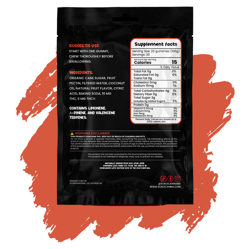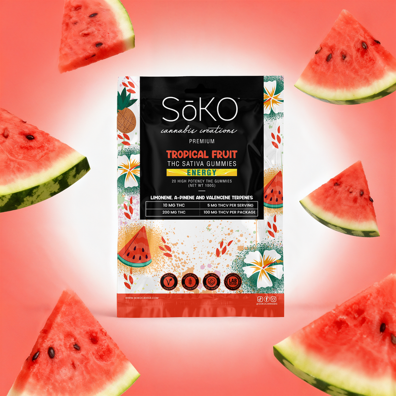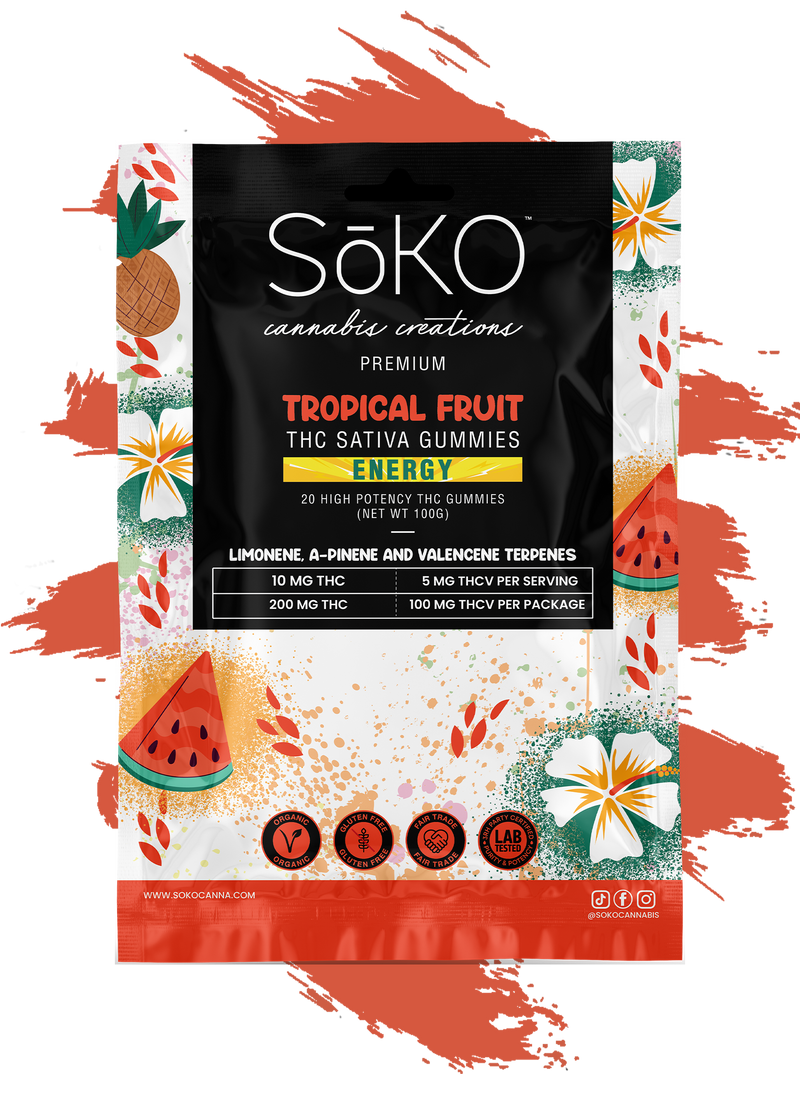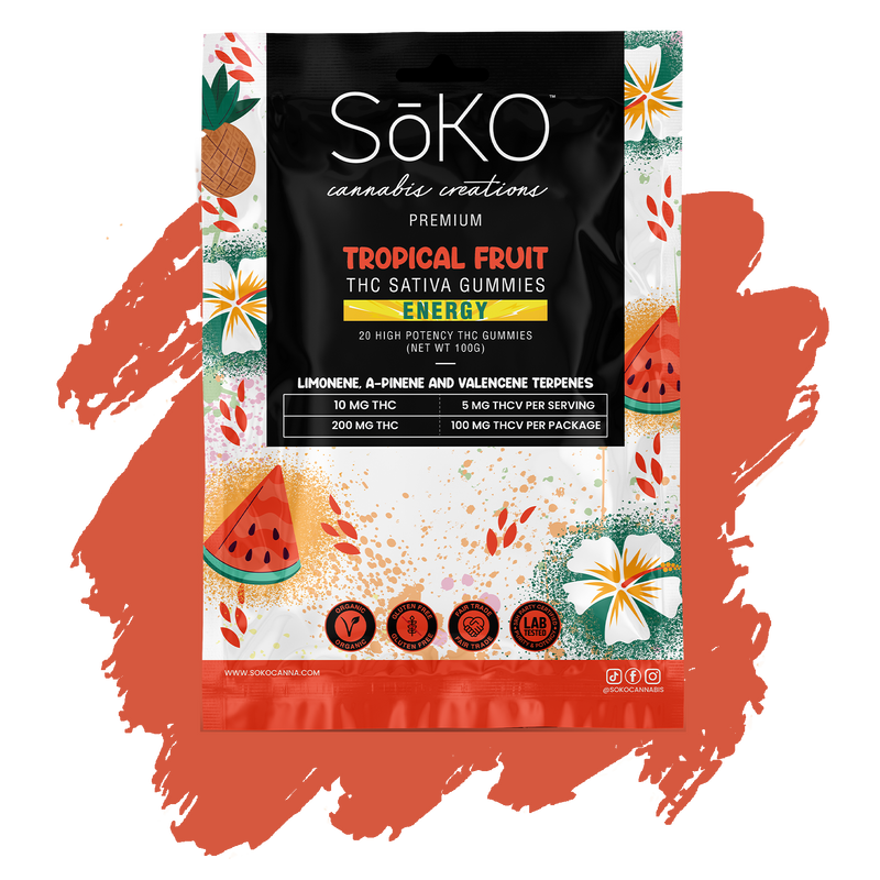 SōKO Sativa Energy THC Gummies are one of the most fun ways to enjoy. Who doesn't like a little sweetness? Besides, with our organic ingredients, these taste just like regular gummies! No earthy taste and no animal products! That's right; our gummies are 100% vegan and perfect for anyone. This is what gives them their elasticity and, well, gummy-like consistency!